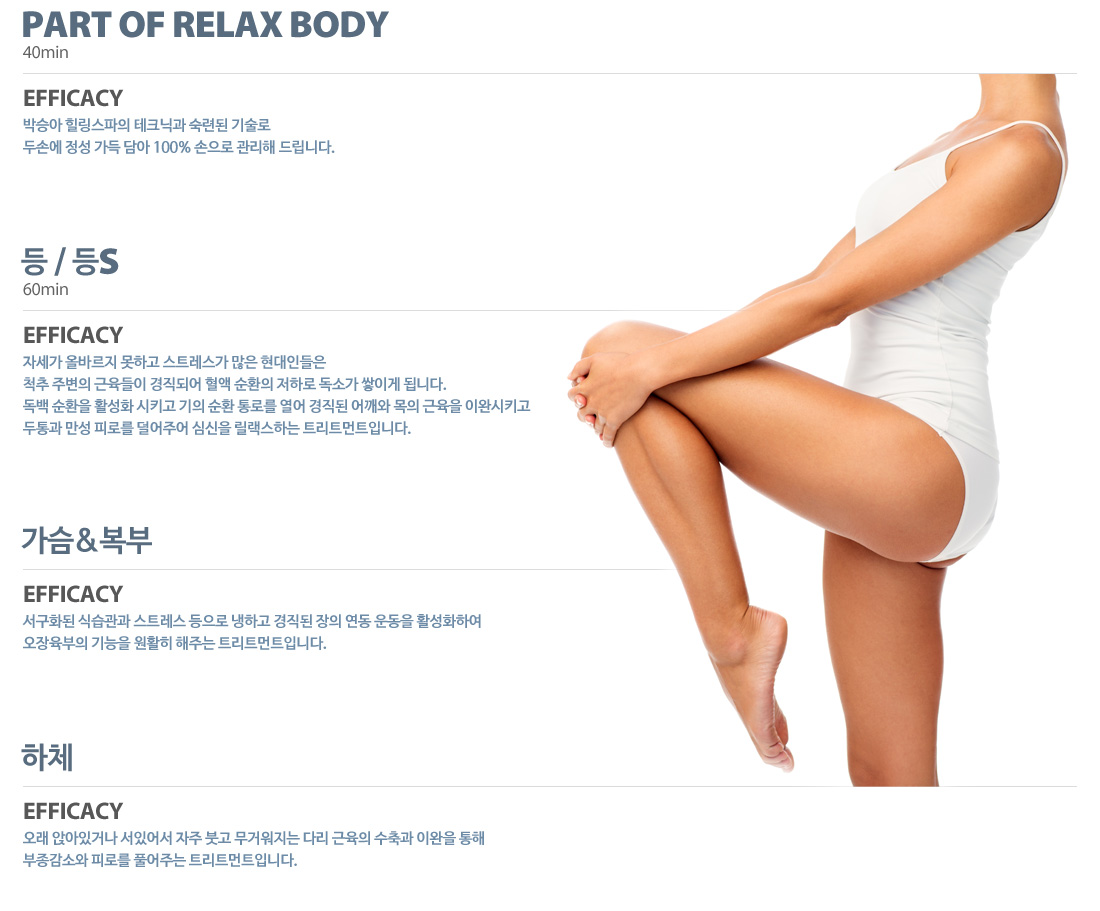 근육의 이완과 순환으로 심신의 안정과 피로를 회복하는 진정한 힐링의 시간을 만끽하세요